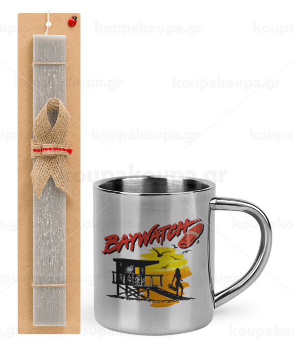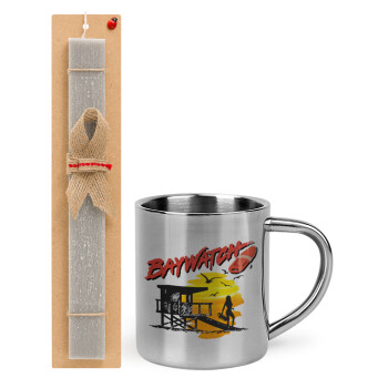 Baywatch, Easter Set, metallic thermal cup (300ml) & Easter aromatic flat candle (30cm) (GRAY)