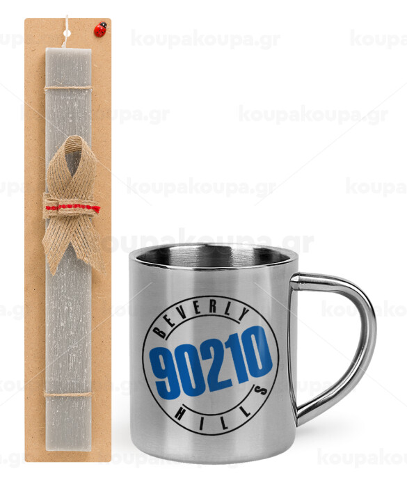 Beverly Hills, 90210, Easter Set, metallic thermal cup (300ml) & Easter aromatic flat candle (30cm) (GRAY)