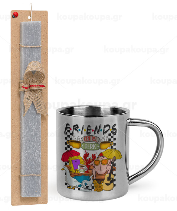 Friends, Easter Set, metallic thermal cup (300ml) & Easter aromatic flat candle (30cm) (GRAY)