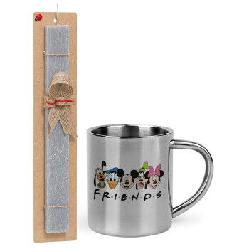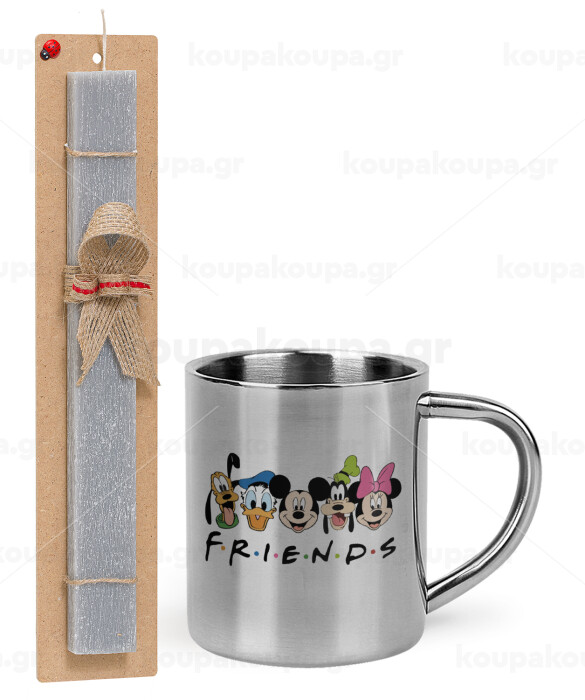 Friends characters, Easter Set, metallic thermal cup (300ml) & Easter aromatic flat candle (30cm) (GRAY)