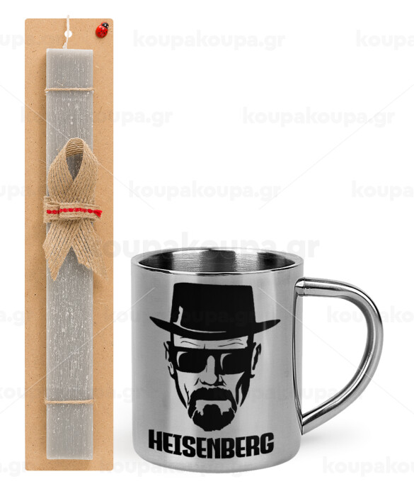 Heisenberg breaking bad, Easter Set, metallic thermal cup (300ml) & Easter aromatic flat candle (30cm) (GRAY)