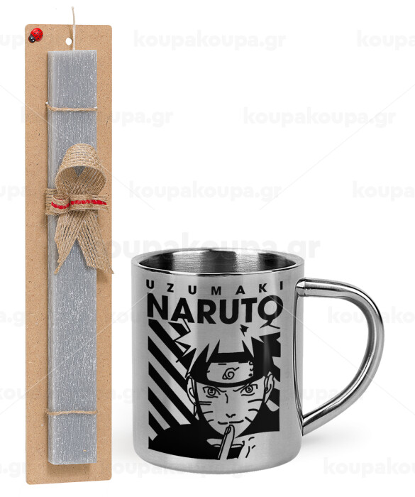 Naruto uzumaki, Easter Set, metallic thermal cup (300ml) & Easter aromatic flat candle (30cm) (GRAY)
