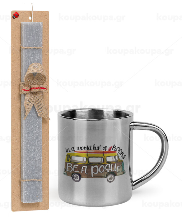 Outerbanks Pogue Life, Easter Set, metallic thermal cup (300ml) & Easter aromatic flat candle (30cm) (GRAY)