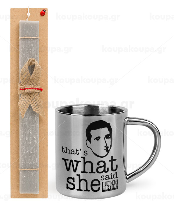 The office Michael That's what she said, Easter Set, metallic thermal cup (300ml) & Easter aromatic flat candle (30cm) (GRAY)