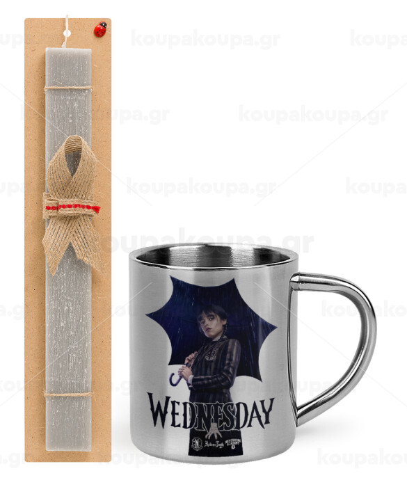 Wednesday rain, Easter Set, metallic thermal cup (300ml) & Easter aromatic flat candle (30cm) (GRAY)
