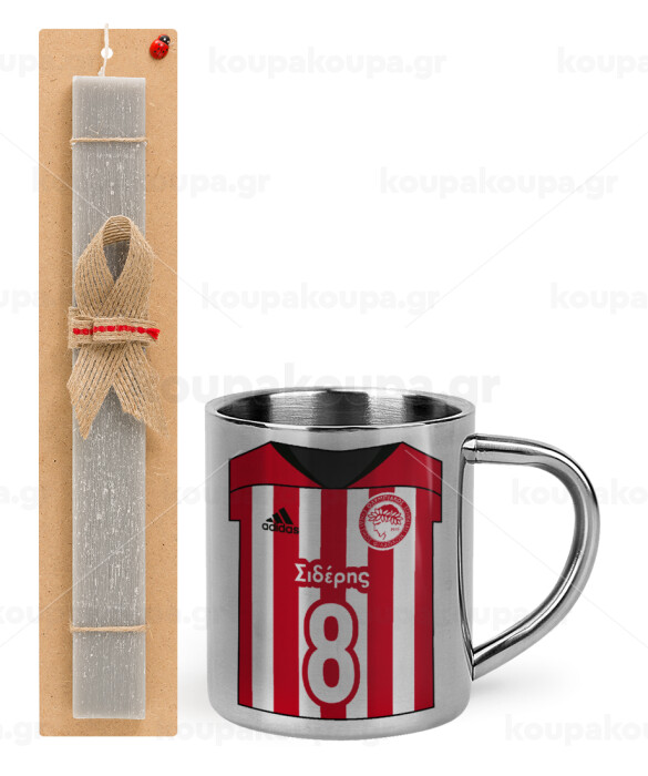 Ολυμπιακός εμφάνιση, Easter Set, metallic thermal cup (300ml) & Easter aromatic flat candle (30cm) (GRAY)
