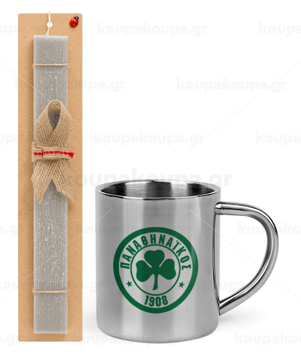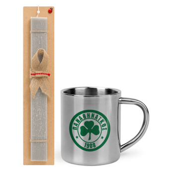 ΠΑΟ Παναθηναϊκός, Easter Set, metallic thermal cup (300ml) & Easter aromatic flat candle (30cm) (GRAY)