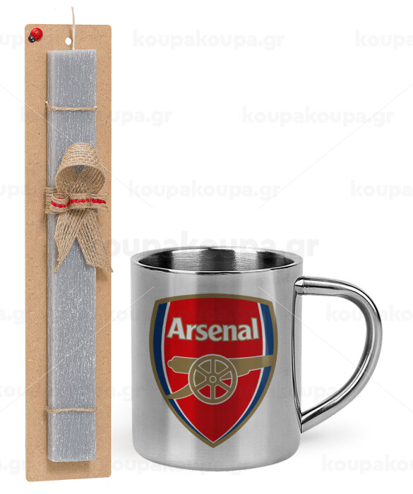 Arsenal, Easter Set, metallic thermal cup (300ml) & Easter aromatic flat candle (30cm) (GRAY)