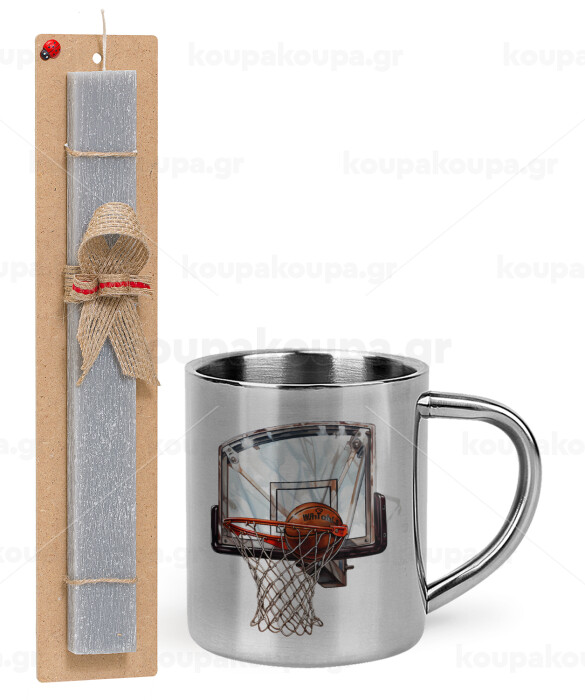 Basketball, Easter Set, metallic thermal cup (300ml) & Easter aromatic flat candle (30cm) (GRAY)