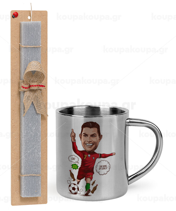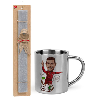 Cristiano Ronaldo, Easter Set, metallic thermal cup (300ml) & Easter aromatic flat candle (30cm) (GRAY)