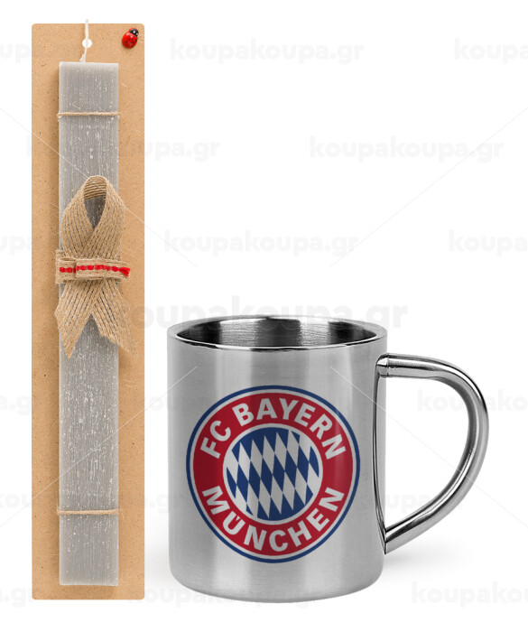 FC Bayern Munich, Easter Set, metallic thermal cup (300ml) & Easter aromatic flat candle (30cm) (GRAY)