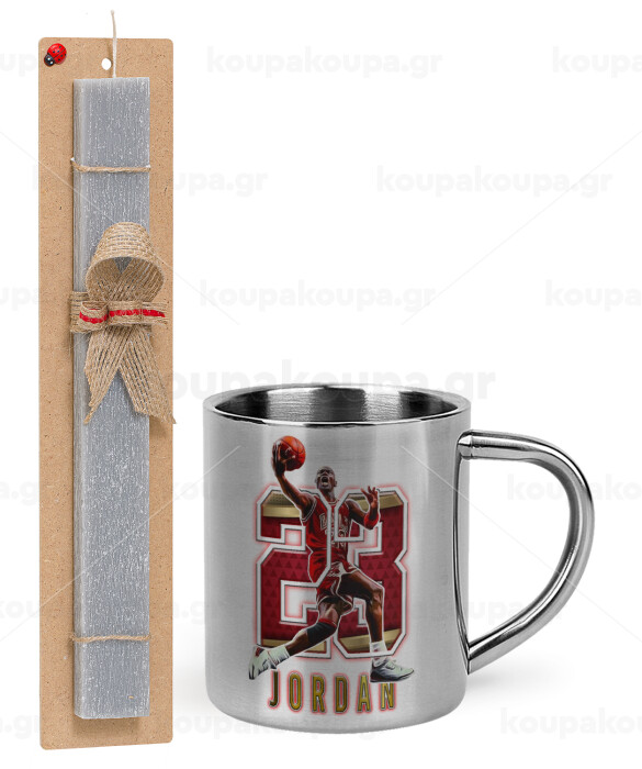 Jordan 23, Easter Set, metallic thermal cup (300ml) & Easter aromatic flat candle (30cm) (GRAY)