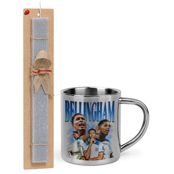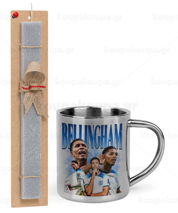 Jude Bellingham, Easter Set, metallic thermal cup (300ml) & Easter aromatic flat candle (30cm) (GRAY)