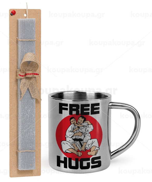 JUDO free hugs, Easter Set, metallic thermal cup (300ml) & Easter aromatic flat candle (30cm) (GRAY)