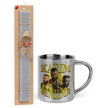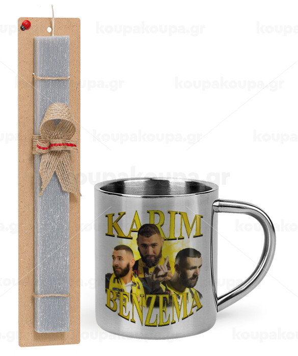 Karim Benzema, Easter Set, metallic thermal cup (300ml) & Easter aromatic flat candle (30cm) (GRAY)