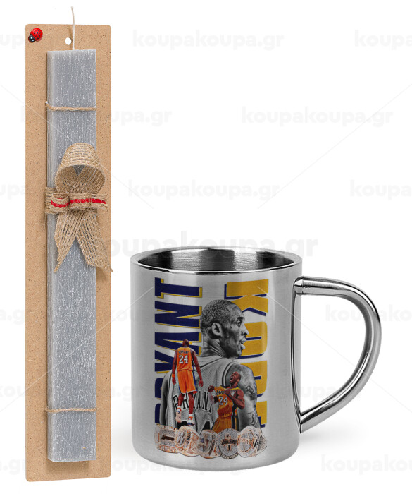 Kobe Bryant, Easter Set, metallic thermal cup (300ml) & Easter aromatic flat candle (30cm) (GRAY)