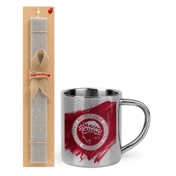 Olympiacos F.C., Easter Set, metallic thermal cup (300ml) & Easter aromatic flat candle (30cm) (GRAY)