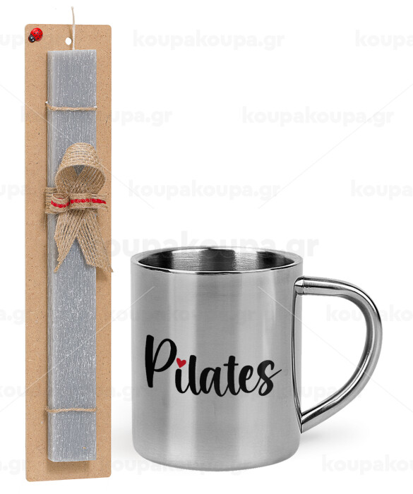 Pilates love, Easter Set, metallic thermal cup (300ml) & Easter aromatic flat candle (30cm) (GRAY)