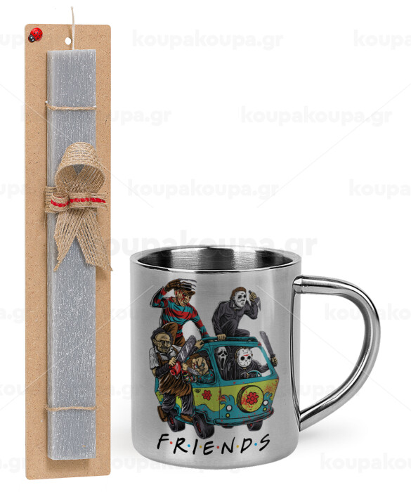 Halloween Friends Scooby Doo, Easter Set, metallic thermal cup (300ml) & Easter aromatic flat candle (30cm) (GRAY)