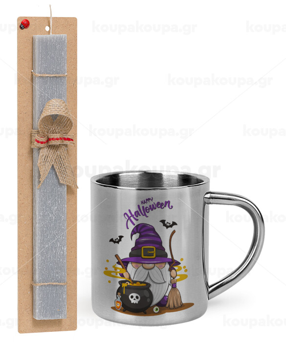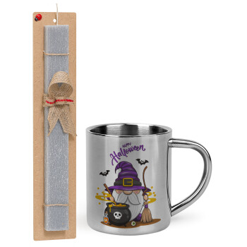 Happy Halloween (Χαλοουίν), Easter Set, metallic thermal cup (300ml) & Easter aromatic flat candle (30cm) (GRAY)