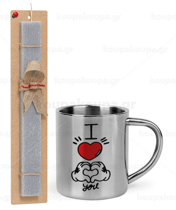 comics hands love, Easter Set, metallic thermal cup (300ml) & Easter aromatic flat candle (30cm) (GRAY)