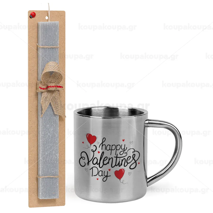 Happy Valentines Day!!!, Easter Set, metallic thermal cup (300ml) & Easter aromatic flat candle (30cm) (GRAY)