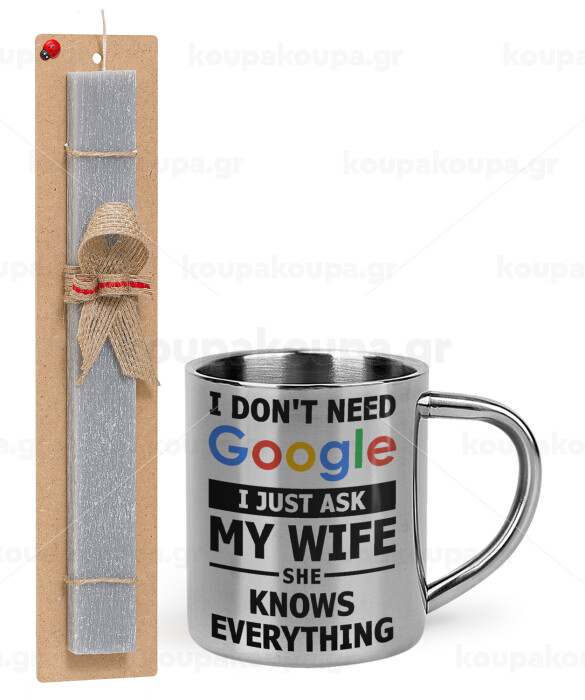 I don't need Google, just ask my WIFE, Easter Set, metallic thermal cup (300ml) & Easter aromatic flat candle (30cm) (GRAY)