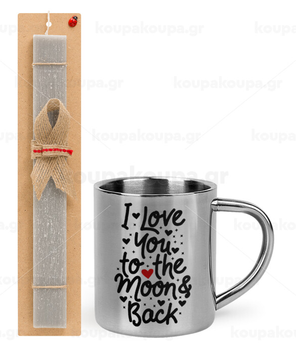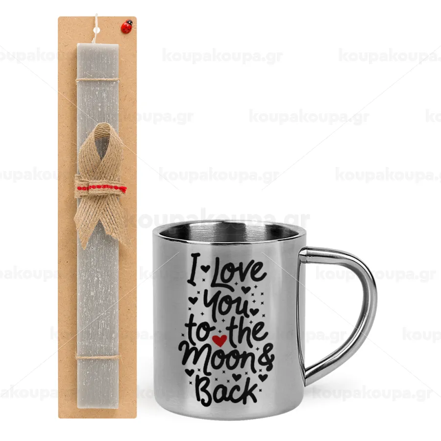 I love you to the moon and back with hearts, Easter Set, metallic thermal cup (300ml) & Easter aromatic flat candle (30cm) (GRAY)
