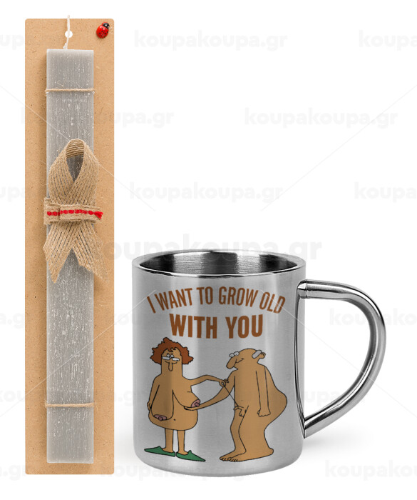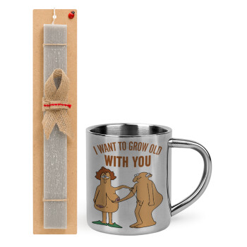 I want to grow old with you, Easter Set, metallic thermal cup (300ml) & Easter aromatic flat candle (30cm) (GRAY)