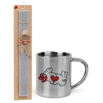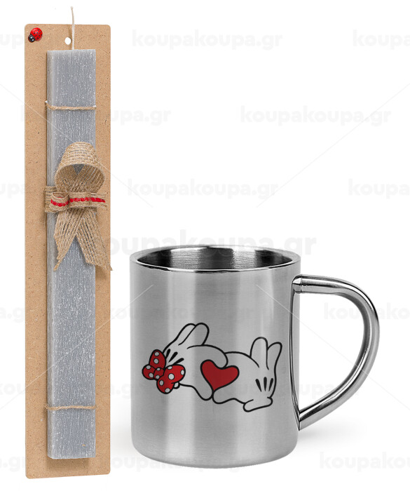 Love hands, Easter Set, metallic thermal cup (300ml) & Easter aromatic flat candle (30cm) (GRAY)
