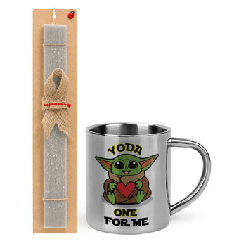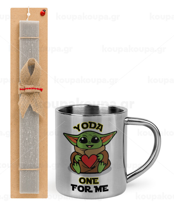 Yoda, one for me , Easter Set, metallic thermal cup (300ml) & Easter aromatic flat candle (30cm) (GRAY)