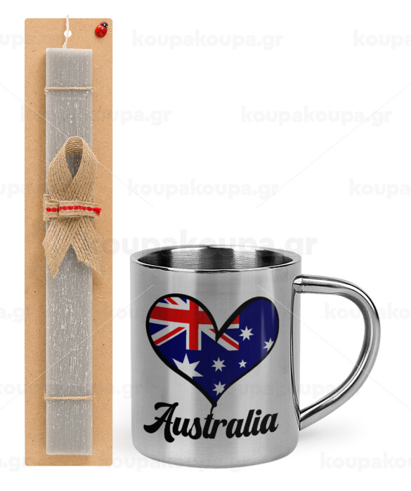 Australia flag, Easter Set, metallic thermal cup (300ml) & Easter aromatic flat candle (30cm) (GRAY)