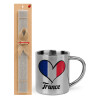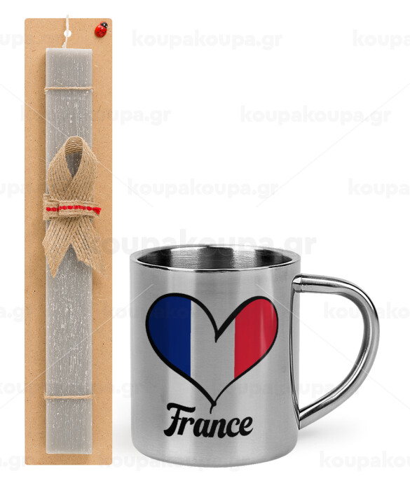 France flag, Easter Set, metallic thermal cup (300ml) & Easter aromatic flat candle (30cm) (GRAY)
