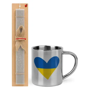 UKRAINE heart, Easter Set, metallic thermal cup (300ml) & Easter aromatic flat candle (30cm) (GRAY)