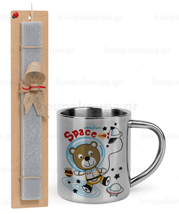Kids Space, Easter Set, metallic thermal cup (300ml) & Easter aromatic flat candle (30cm) (GRAY)
