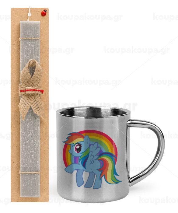 My Little Pony, Easter Set, metallic thermal cup (300ml) & Easter aromatic flat candle (30cm) (GRAY)