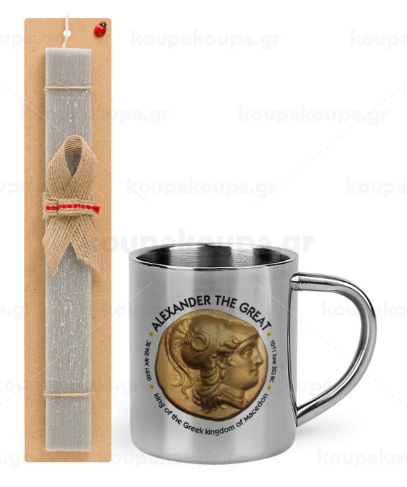 Alexander the Great, Easter Set, metallic thermal cup (300ml) & Easter aromatic flat candle (30cm) (GRAY)