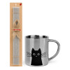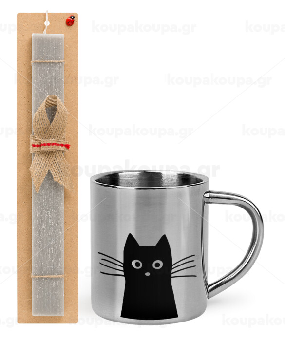 Black Cat, Easter Set, metallic thermal cup (300ml) & Easter aromatic flat candle (30cm) (GRAY)
