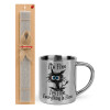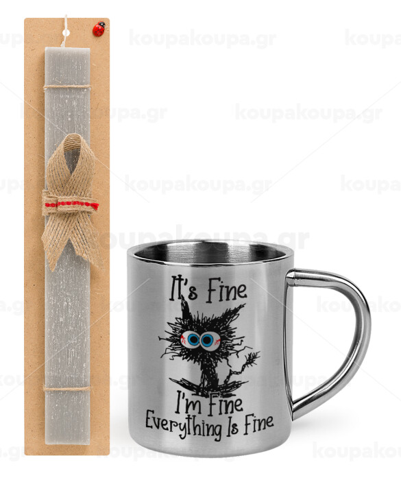 Cat, It's Fine I'm Fine Everything Is Fine, Easter Set, metallic thermal cup (300ml) & Easter aromatic flat candle (30cm) (GRAY)