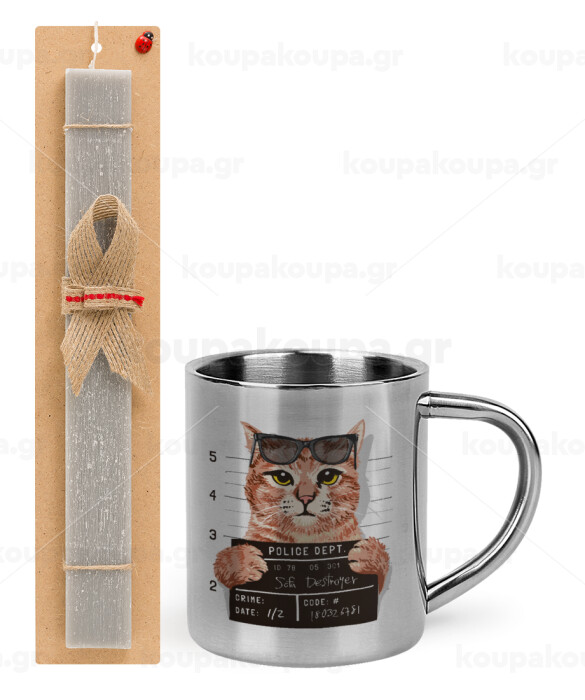 Cool cat, Easter Set, metallic thermal cup (300ml) & Easter aromatic flat candle (30cm) (GRAY)