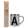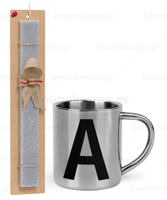 Μονόγραμμα , Easter Set, metallic thermal cup (300ml) & Easter aromatic flat candle (30cm) (GRAY)
