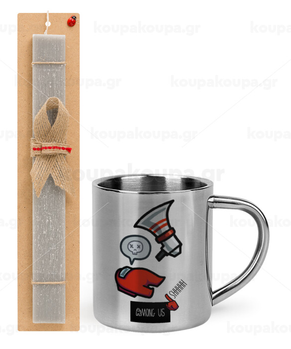 Among US Shhhh!!!, Easter Set, metallic thermal cup (300ml) & Easter aromatic flat candle (30cm) (GRAY)