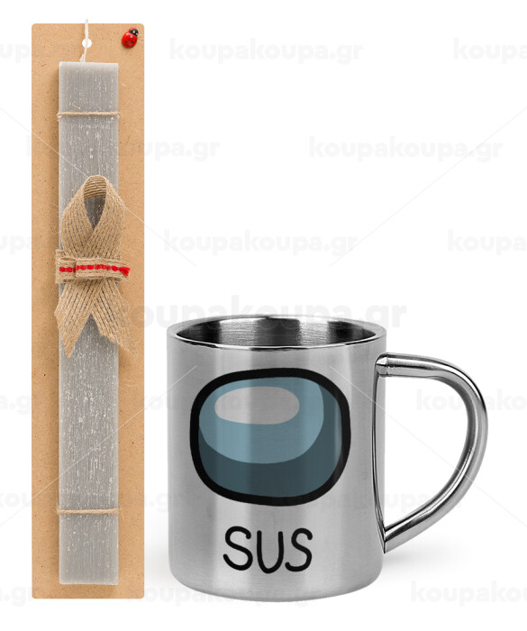 Among US SUS!!!, Easter Set, metallic thermal cup (300ml) & Easter aromatic flat candle (30cm) (GRAY)