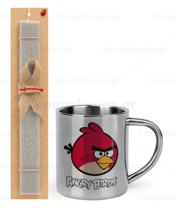 Angry birds Terence, Easter Set, metallic thermal cup (300ml) & Easter aromatic flat candle (30cm) (GRAY)