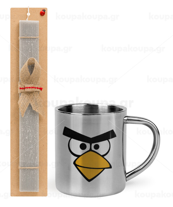 Angry birds eyes, Easter Set, metallic thermal cup (300ml) & Easter aromatic flat candle (30cm) (GRAY)