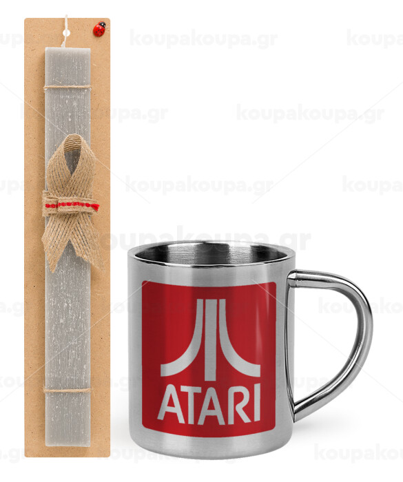 atari, Easter Set, metallic thermal cup (300ml) & Easter aromatic flat candle (30cm) (GRAY)