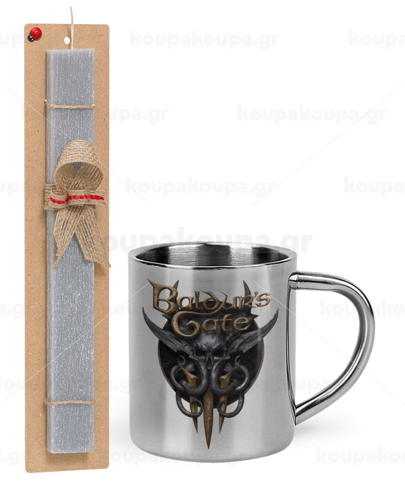 Baldur's Gate, Easter Set, metallic thermal cup (300ml) & Easter aromatic flat candle (30cm) (GRAY)