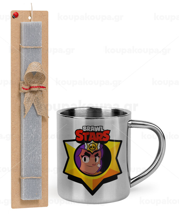 Brawl Stars Shelly, Easter Set, metallic thermal cup (300ml) & Easter aromatic flat candle (30cm) (GRAY)