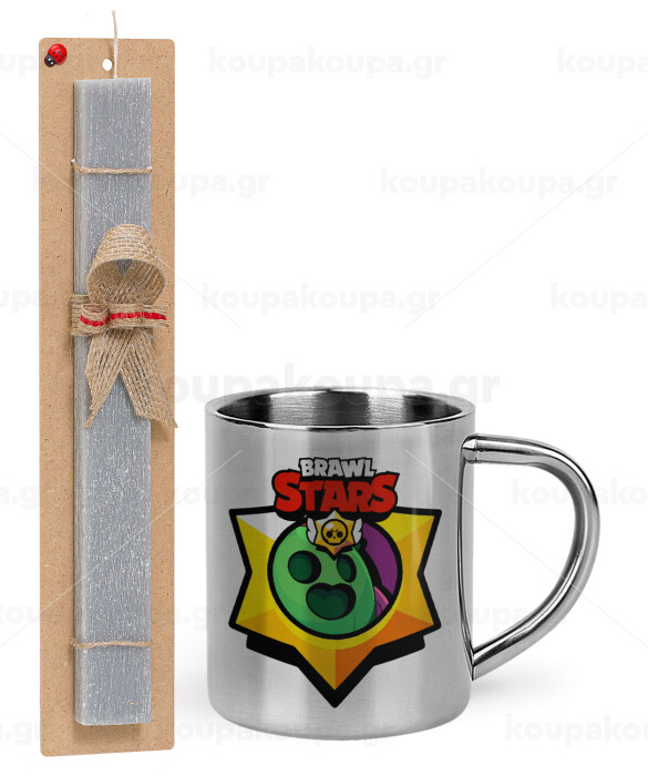 Brawl Stars Spike, Easter Set, metallic thermal cup (300ml) & Easter aromatic flat candle (30cm) (GRAY)