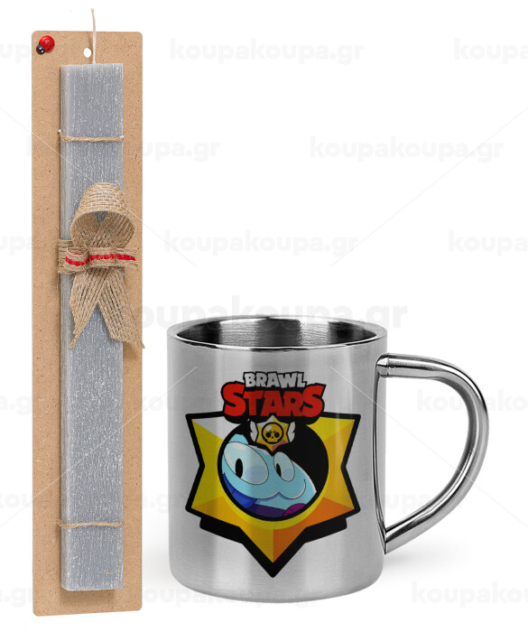 Brawl Stars Squeak, Easter Set, metallic thermal cup (300ml) & Easter aromatic flat candle (30cm) (GRAY)